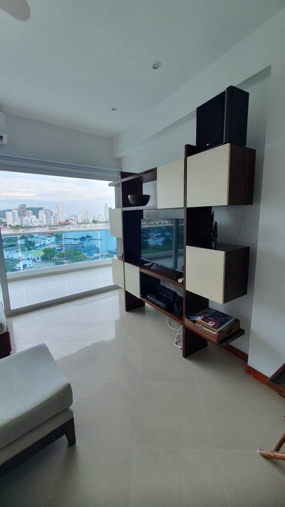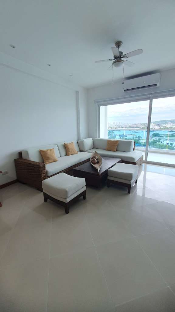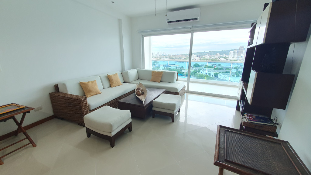 Se alquila hermoso apartamento amoblado en bocagrande en un piso 14 con vista a la base naval y la bahía, apartamento con dala comedor amplia, baño de servicio, cocina abierta, balcón grande, 2 alcobas y 2 baños, se arrienda mínimo por 6 meses o un año, solo es de uso residencial