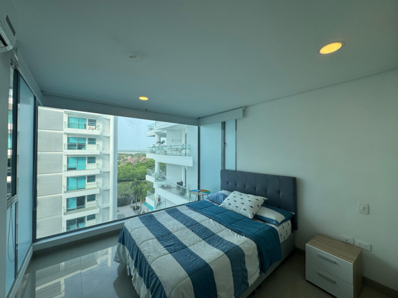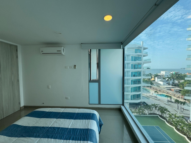Se Arrienda apartamento en el Sector de la boquilla Amoblado con vista parcial al Mar. Con 3 habitaciones, 2 baños consta de 107mt2, este espacio ofrece comodidad y elegancia. Cocina equipada, aire acondicionado central y vista panorámica son solo algunas de las características que lo hacen único. Disfruta de las amenidades del edificio, como piscina, Salida directa al Mar, gimnasio, vigilancia 24/7h y zonas verdes. El precio Incluye solamente la Administración, cuen con acceso a colegios, supermercados y transporte público cercano, este lugar es ideal para quienes buscan calidad de vida.