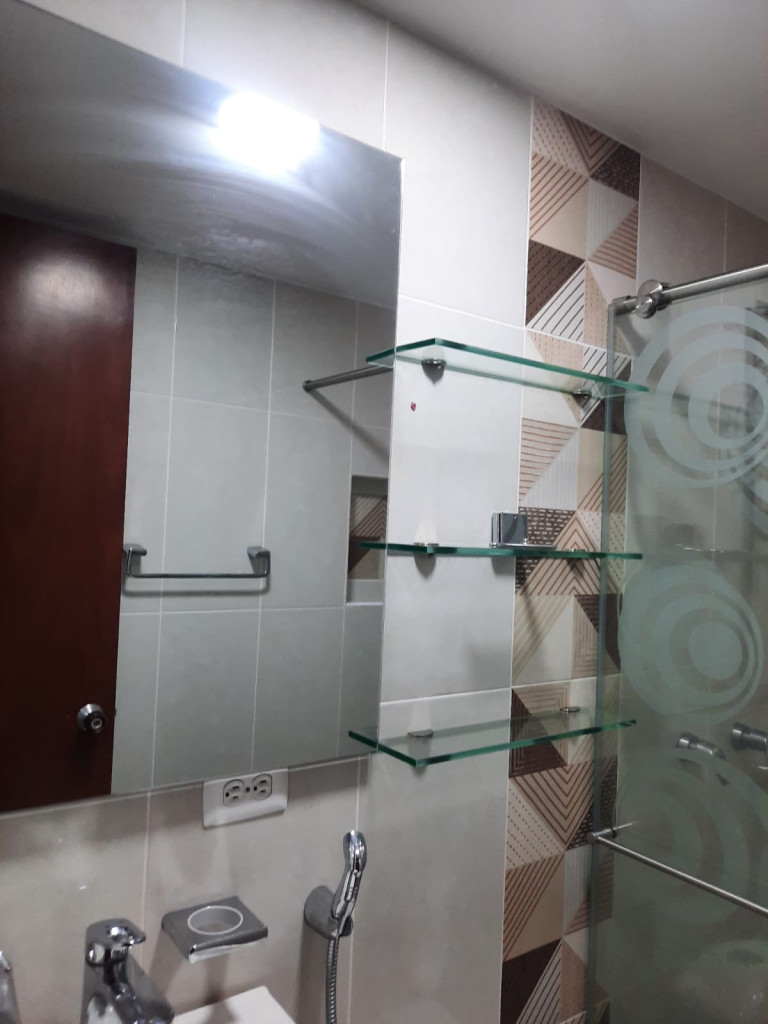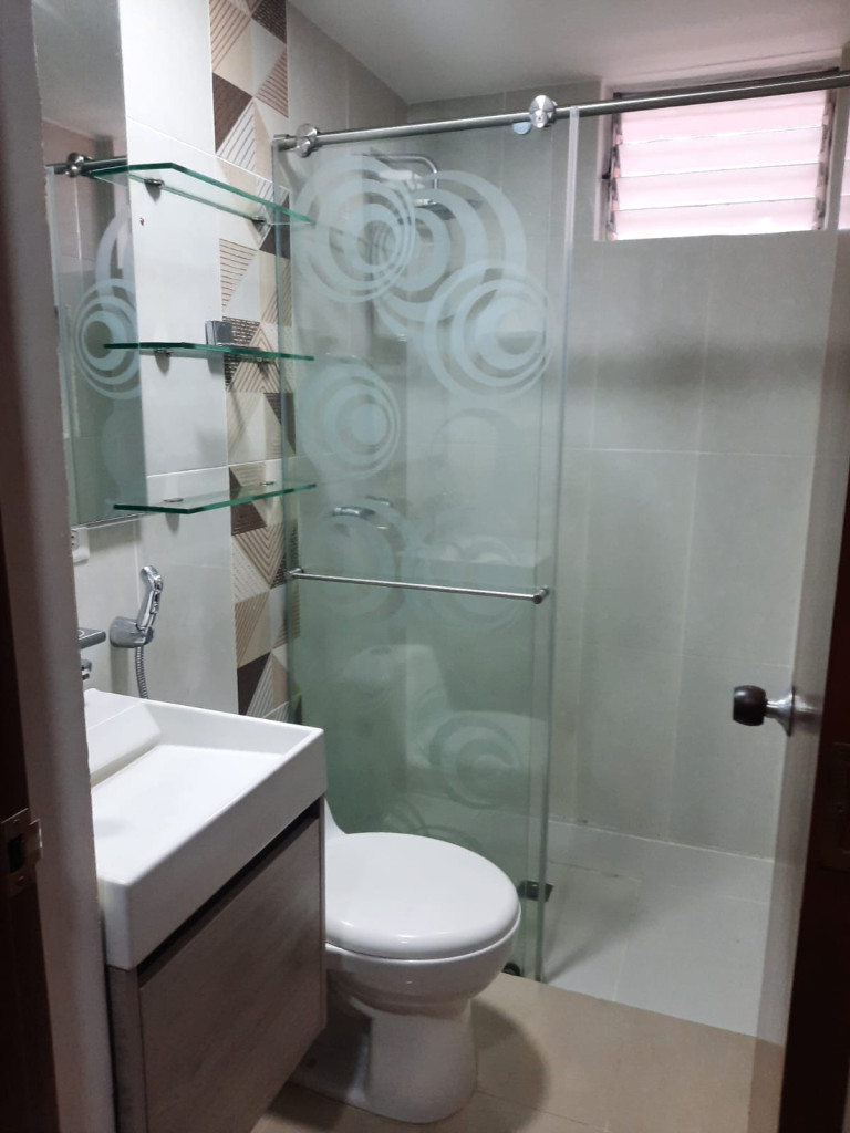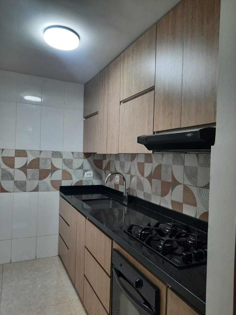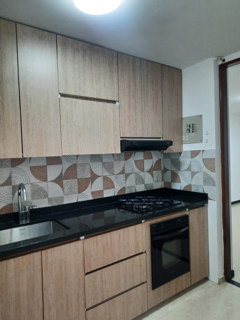 Apartamento en tercer piso en conjunto cerrado, con un área de 76 m2, cuenta con dos habitaciones con closet, dos baños con acabados de lujo, sala comedor, estudio y/o sala de tv, balcón, zonas de oficios. Se entrega con un mueble en madera y cortinera japonesa, un parqueadero cubierto. El conjunto tiene portería con vigilancia privada, piscina, canchas deportivas, salón social, zona wifi.
