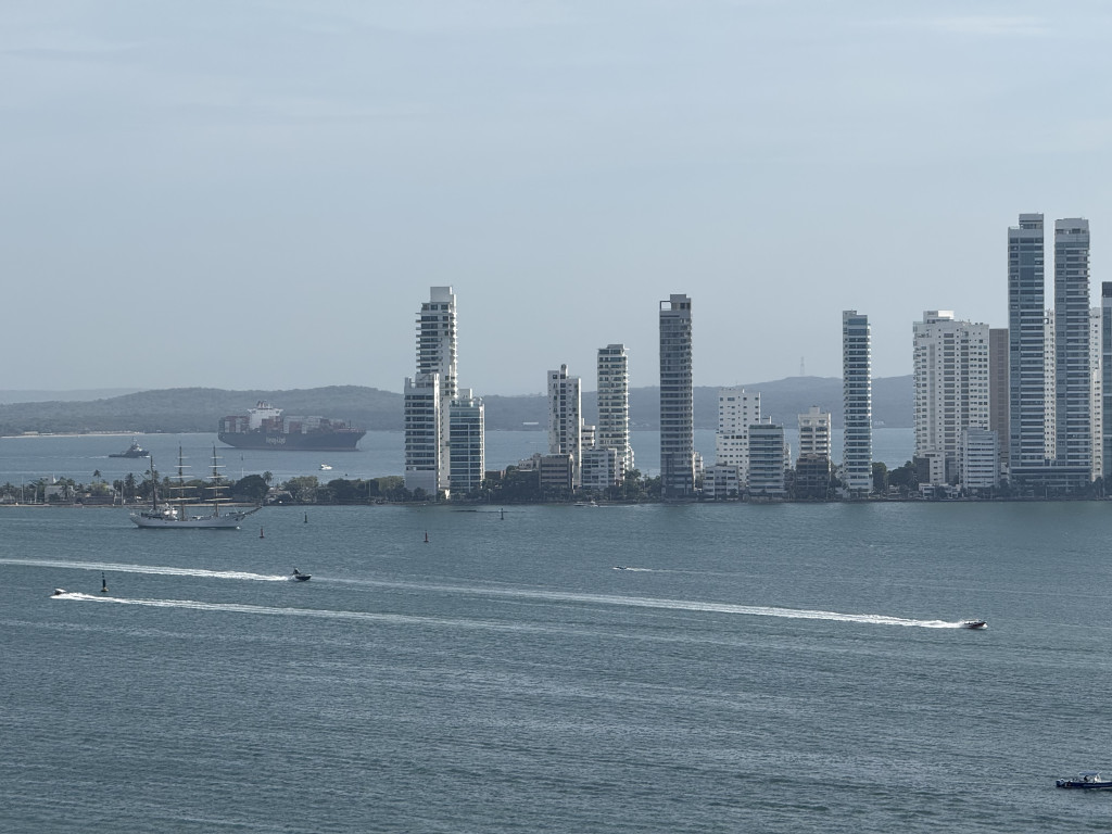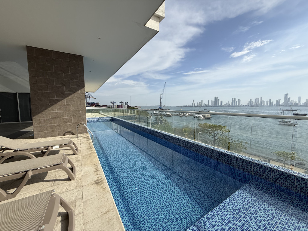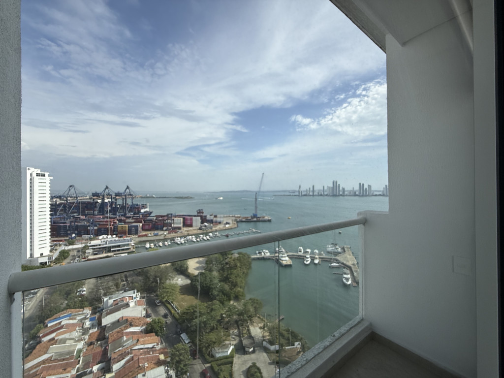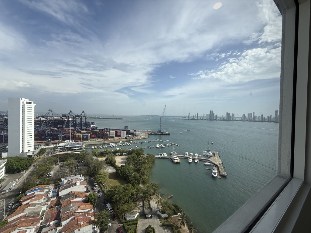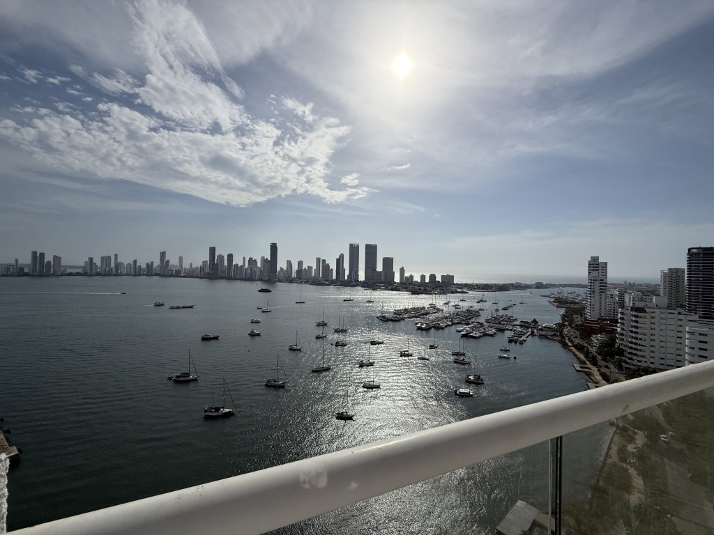 Apartamento en venta en el barrio Manga, frente a la bahía de Manga, ubicado en un piso alto con una espectacular vista, cuenta con 155 metros cuadrados distribuidos en tres habitaciones, tres baños, habitación de servicio con su baño, amplia sala comedor y cocina integral, en un edificio moderno con excelentes amenidades como piscina, gimnasio y salón de eventos, ideal para vivir con comodidad en una de las zonas más exclusivas y valorizadas de Cartagena
