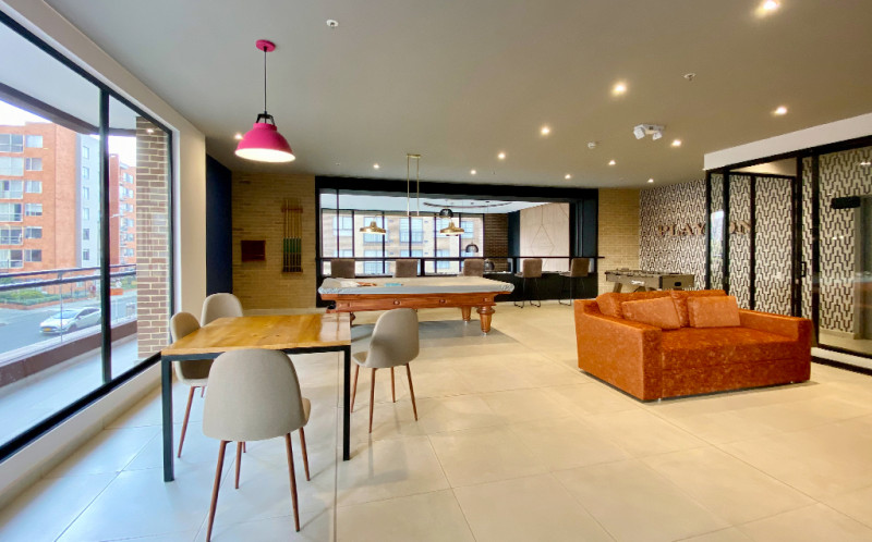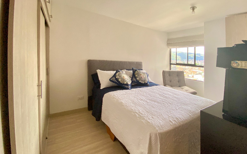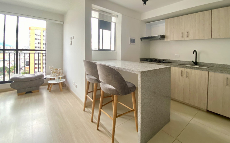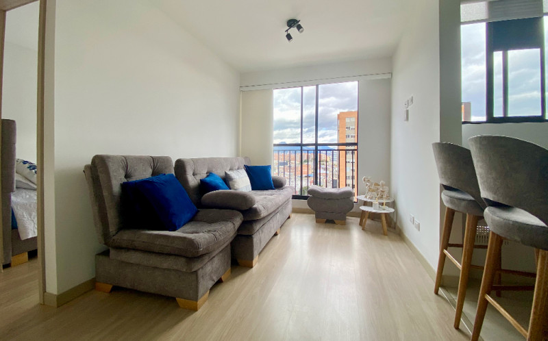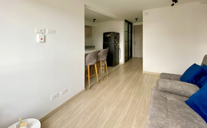 Apartamento moderno remodelado en piso alto, con una vista panorámica que permite disfrutar del sol durante la mañana y tarde. Su diseño interior ofrece ambientes modernos y funcionales: dos alcobas, la principal con clóset de piso a techo y pared a pared, un espacio adicional que puede destinarse como depósito o incluso adecuarse como segundo baño, sala comedor iluminada con ventanales de piso a techo. cocina abierta con barra en granito, zona de lavandería con división en vidrio. El conjunto ofrece parqueadero de visitantes, portería y vigilancia 24/7, además de completas zonas sociales: salón social con cocineta y baños, gimnasio, salón de clases grupales, terraza para TRX, teatrino, coworking, sala de juegos, parque infantil, cancha múltiple, sendero peatonal, parque para mascotas, terraza con chimeneas y BBQ. Una opción ideal para quienes buscan comodidad, modernidad y entretenimiento en un solo lugar.