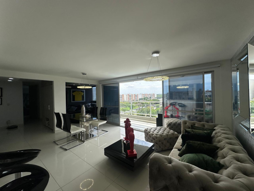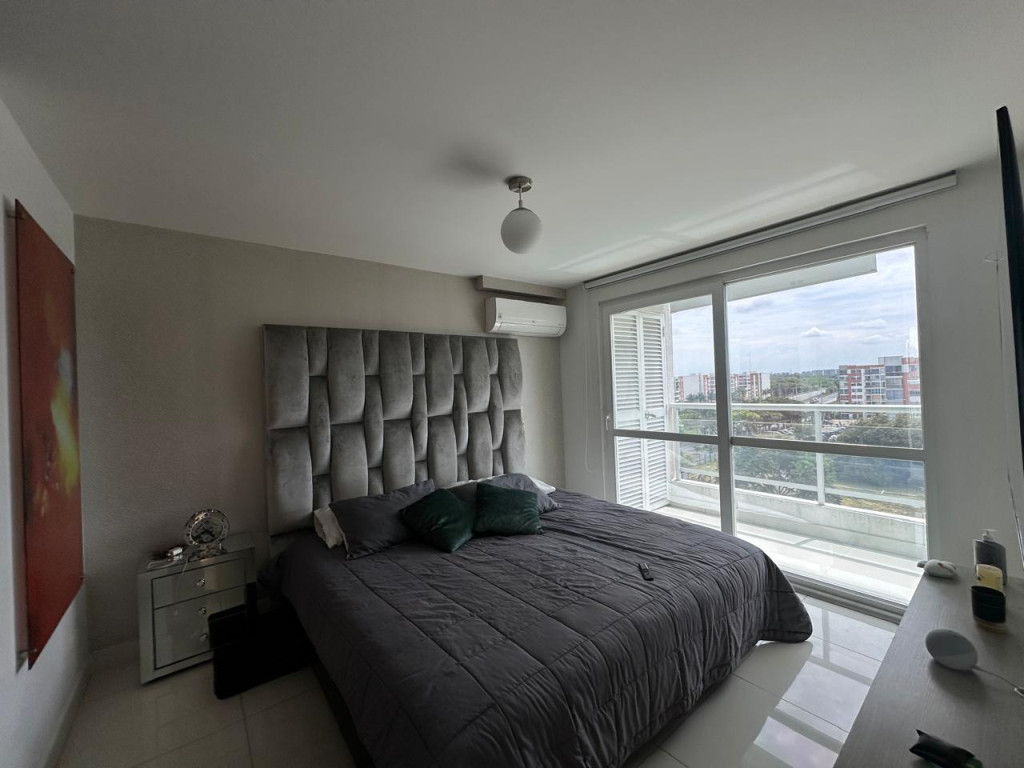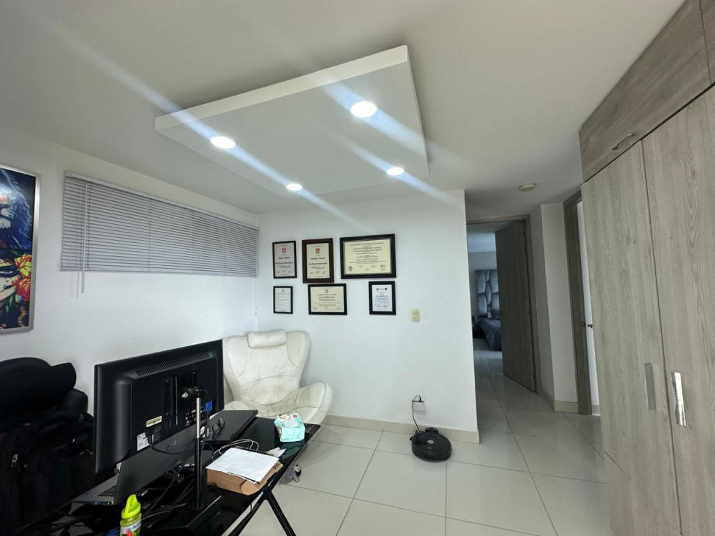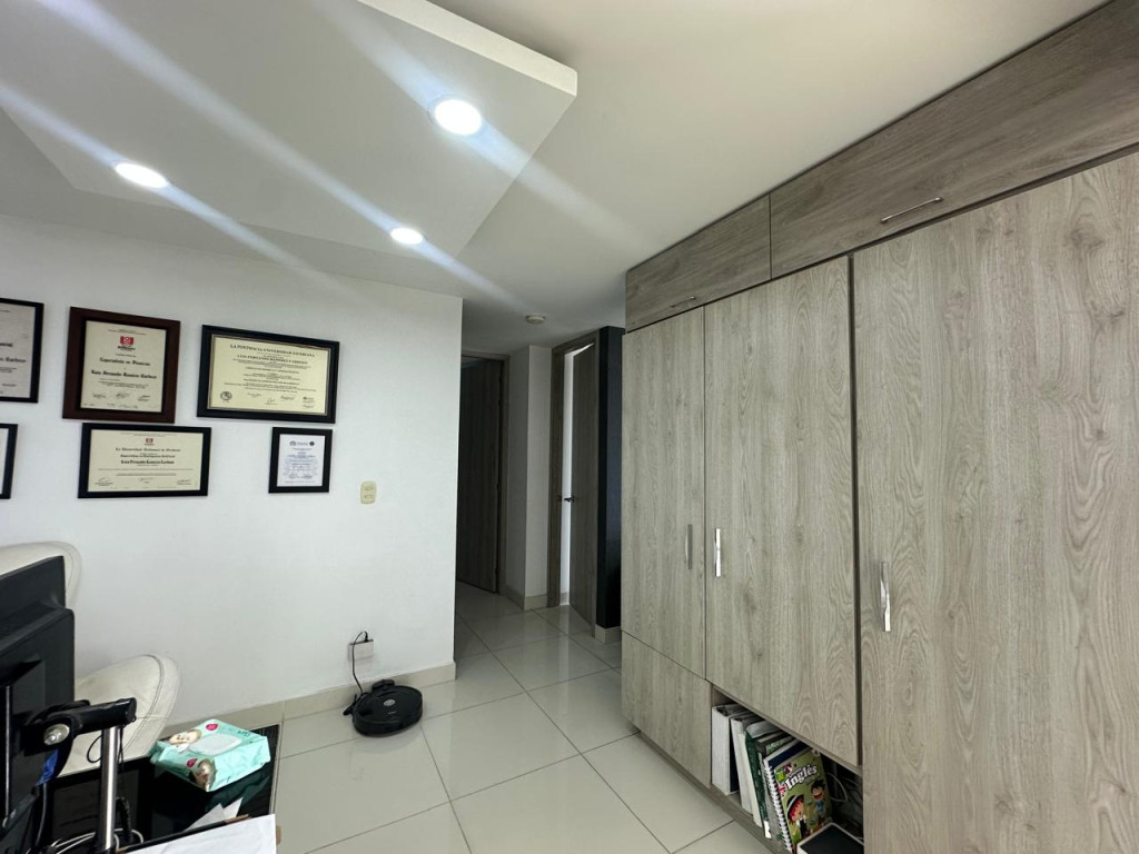Venta de hermoso apartamento en Valle del Lili, ubicado en un octavo piso con ascensor. El apartamento tiene 107 metros cuadrados construidos distribuidos asi: Sala- comedor con acceso a balcón grande, cocina abierta amplia, zona de oficios, baño social, sala de TV que se puede convertir en una tercera habitación, estudio, baño de alcobas, habitación auxiliar con closet, habitación principal con vestier, baño privado y balcón. El apartamento cuenta con parqueadero doble lineal en sótano y depósito. El edificio cuenta con piscinas, juegos infantiles, salón social, gimnasio y vigilancia privada 24/7.