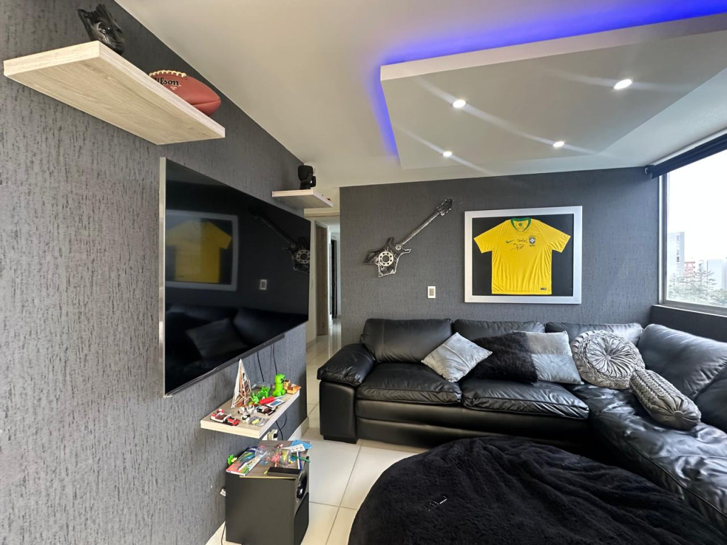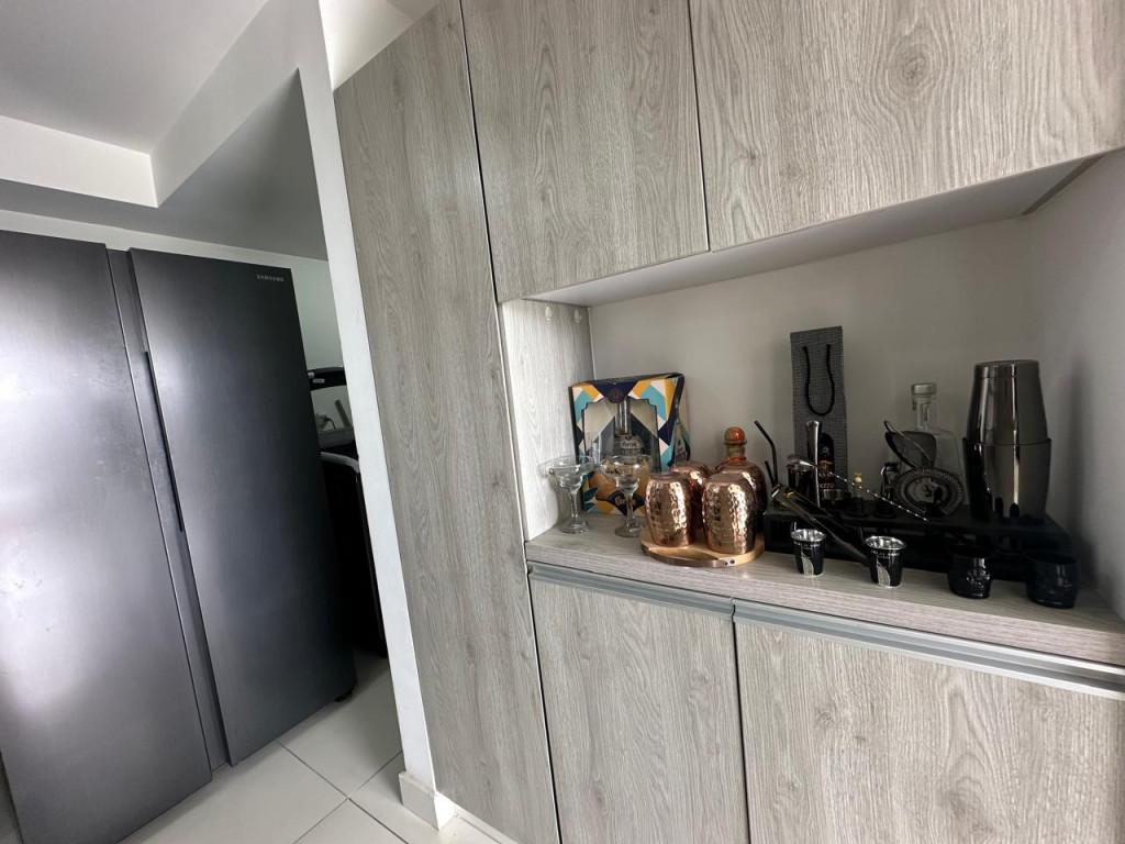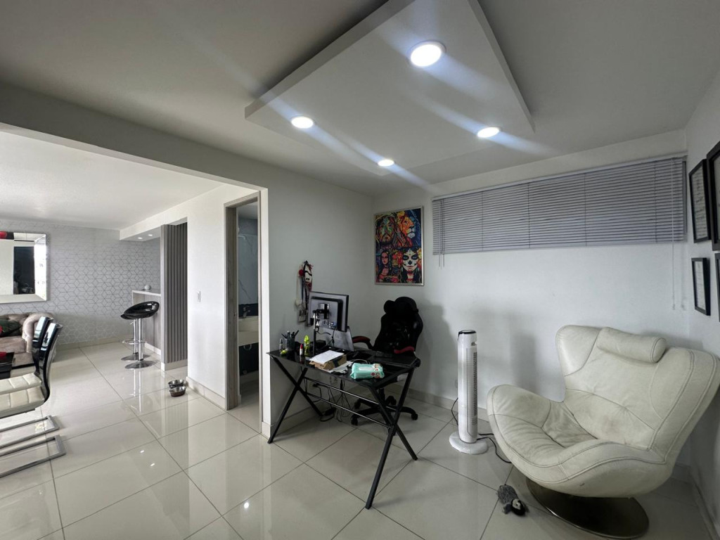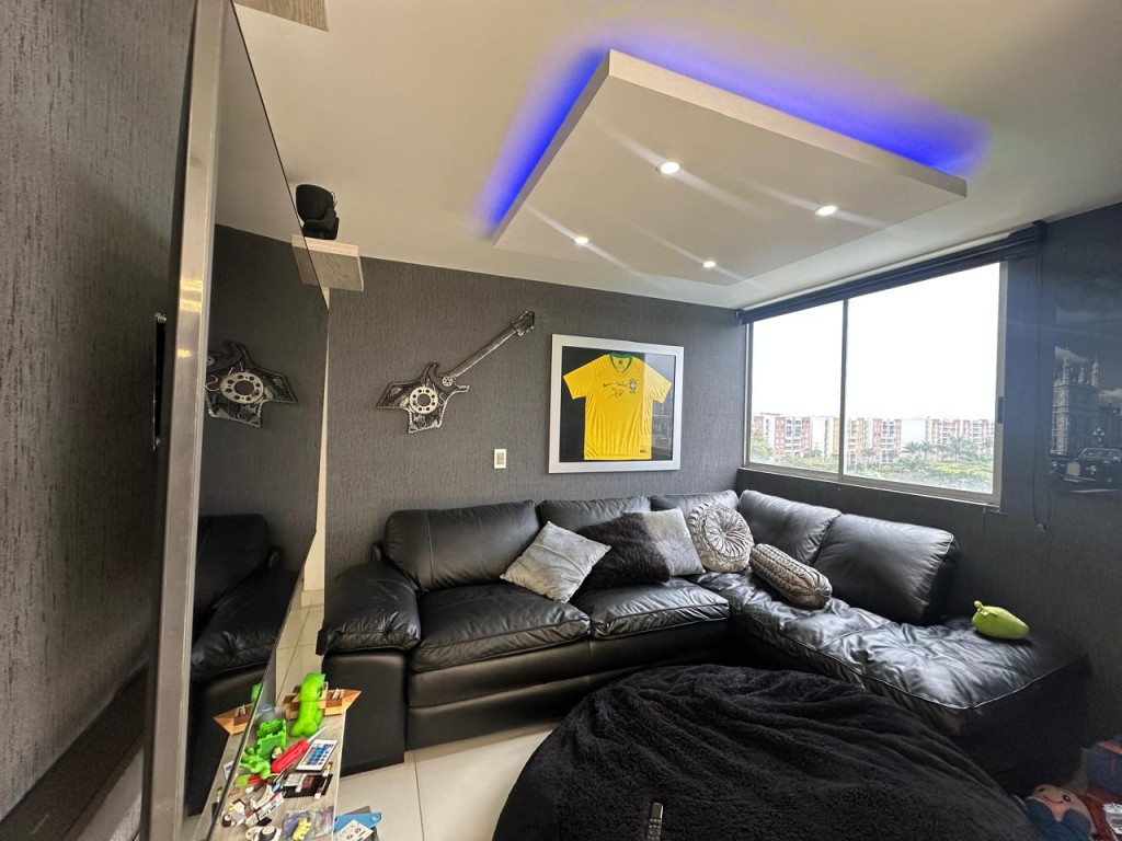Venta de hermoso apartamento en Valle del Lili, ubicado en un octavo piso con ascensor. El apartamento tiene 107 metros cuadrados construidos distribuidos asi: Sala- comedor con acceso a balcón grande, cocina abierta amplia, zona de oficios, baño social, sala de TV que se puede convertir en una tercera habitación, estudio, baño de alcobas, habitación auxiliar con closet, habitación principal con vestier, baño privado y balcón. El apartamento cuenta con parqueadero doble lineal en sótano y depósito. El edificio cuenta con piscinas, juegos infantiles, salón social, gimnasio y vigilancia privada 24/7.