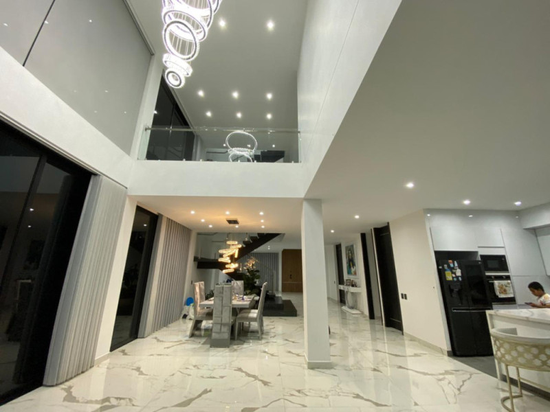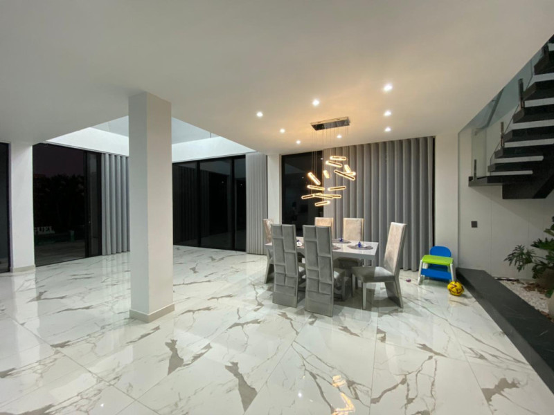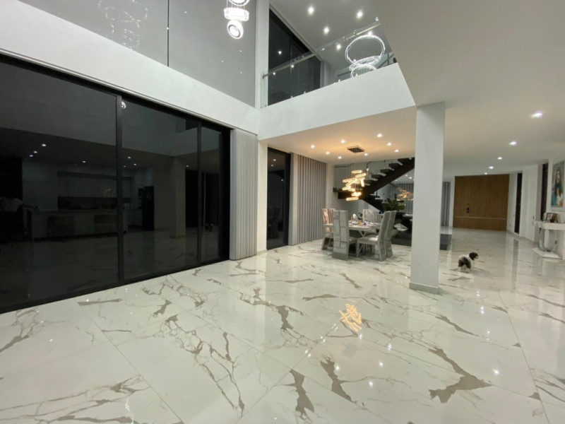 Exclusiva y moderna casa en condominio en Pance con acabados de lujo, consta de 1 piso parqueadero para 6 vehículos, 2 salas comedor independientes, cocina abierta con isla, amplia e iluminada, zona de ropas, habitación del servicio con baño y closet en madera, sala de cine, zona verde, piscina con jacuzzi y playa, zona BBQ, 2 piso 4 habitaciones cada una con su baño privado y vestier, sala de televisión y estudio u oficina y amplia terraza, condominio con vigilancia 24/7, cerca eléctrica, piscina de adultos y niños, turco, juegos infantiles, zonas verdes y planta eléctrica que surte todo el condominio, cómodas vías de acceso, cercano a los mejores colegios y universidades del sur de Cali, centros comerciales, restaurantes, estaciones de servicio, iglesias, clínicas y bancos. Precio negociable.