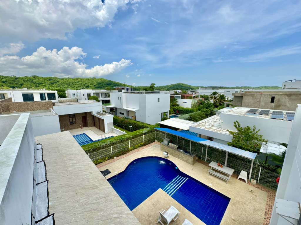 En venta casa en uno de los condominios más exclusivos de Cartagena, Barcelona de Indias. La propiedad cuenta con 4 habitaciones, 5 baños, más un baño social para visitas. Su amplia sala comedor de concepto abierto se integra perfectamente con una cocina estilo americano, ascensor interno para facilitar el acceso, garaje para 10 carros, piscina grande