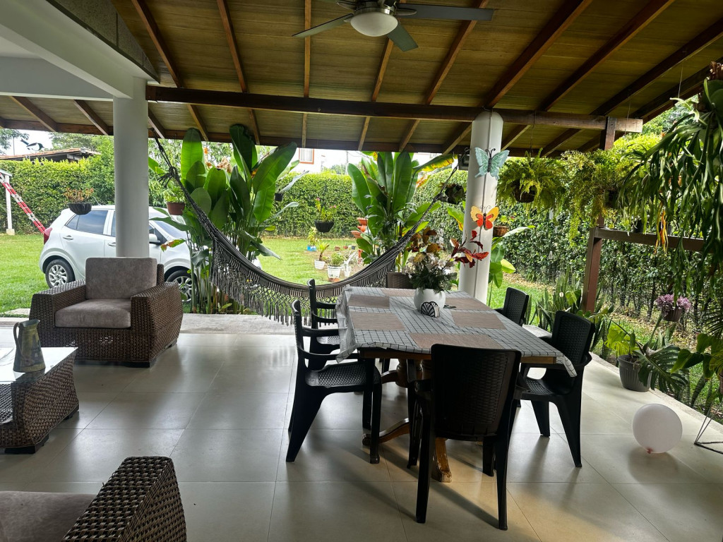 Se vende hermosa casa de dos niveles en condominio Club del Campo La Morada consta de: 1 piso Sala comedor amplia, cocina americana moderna, sala de televisión, baño social, habitación amplia con baño, grandes ventanales, zona BBQ con fogón de leña y cocineta, zona verde con amplio espacio para hacer la piscina. 2 piso 3 habitaciones todas con baño, la principal con vestier, habitación opcional, sala de televisión, 2 balcones y tanque de reserva de agua. Precio negociable.