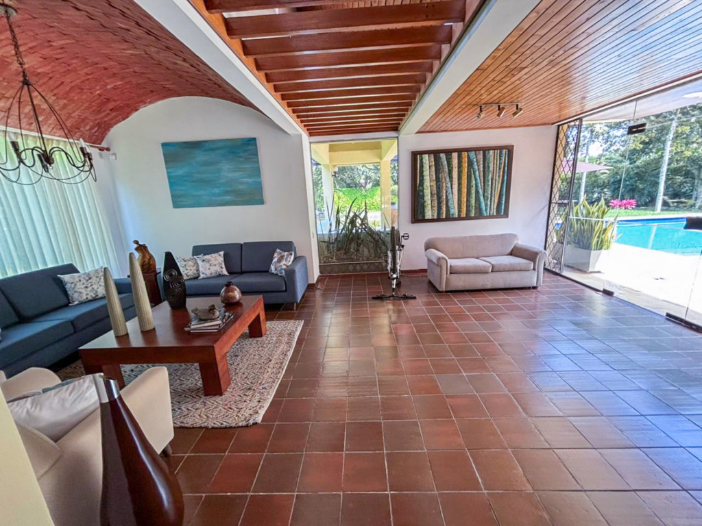 Hermosa Casa Independiente con amplias zonas verdes Casa Mayormente de 1 piso Con solo la Habitación Principal en el 2do Piso Lote 3250 m2 Casa 450 m2 3 Habitaciones + Servicio Todas con Baño Principal con 2 vestidores y 2 balcones 2 alcobas auxiliares en Primer Piso Sala Comedor Cocina Comedor Auxiliar Star TV Estadero con Sala Exterior Zona BBQ Piscina Jacuzzi Amplia Zona Verde Parqueadero 10 Carros 2 cubiertos 8 descubiertos Valor Venta. $3.700 Millones Índice de Construcción 2.1 Uso Mixto (Excepto Salud)