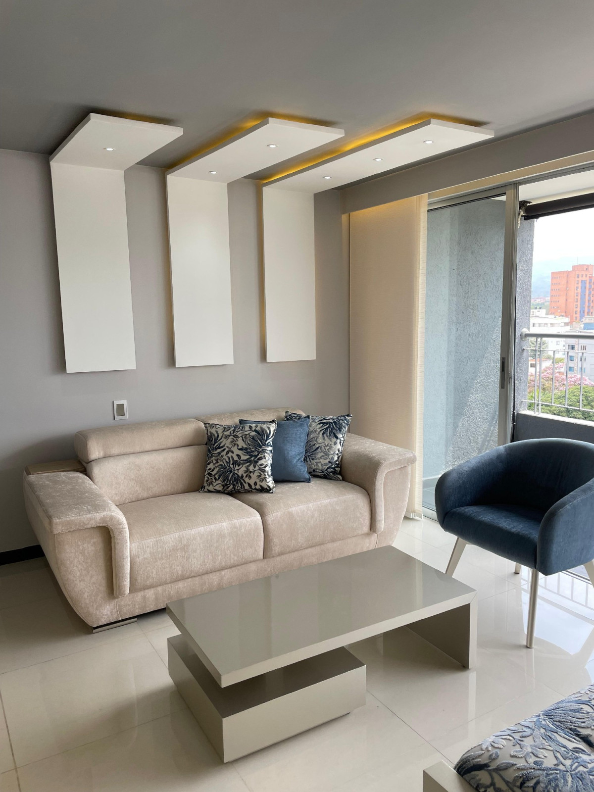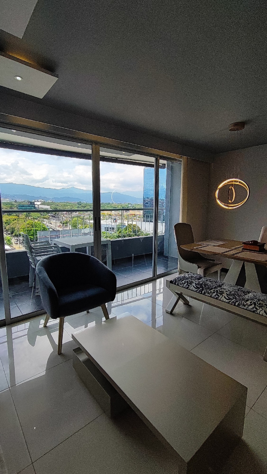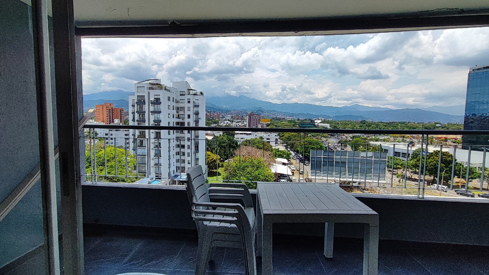 Se renta Apto Amoblado piso 11 con ascensor. ubicado en Mirador de Terrazas en Ciudad Jardín. Consta de 3 alcobas con closet, principal con vestier, baño, aire acondicionado y balcón, una de las auxiliares cuenta también con aire acondicionado; estudio, baño de alcobas, sala comedor con balcón amplio; cocina integra equipada, tipo americana; baño social; zona de oficio y parqueadero para 1 vehículo en sótano. El apto tiene vista externa a jardín plaza, se renta completamente amoblado, camas, televisores, horno microondas, nevera, sala, comedor y demás. El apto cuenta con excelentes acabados, pisos en porcelanato, baños con divisiones en vidrio templado; puertas, marcos, closet, vestier, muebles de cocinas y baños en madera; lámparas en sala comedor. blackout en alcobas y panel japonés en sala, etc. La ubicación es increíble, cerca de todo, centros comerciales, bancos, colegios, universidades, clínicas, restaurantes, etc. Precio no incluye servicios públicos, incluye administración.