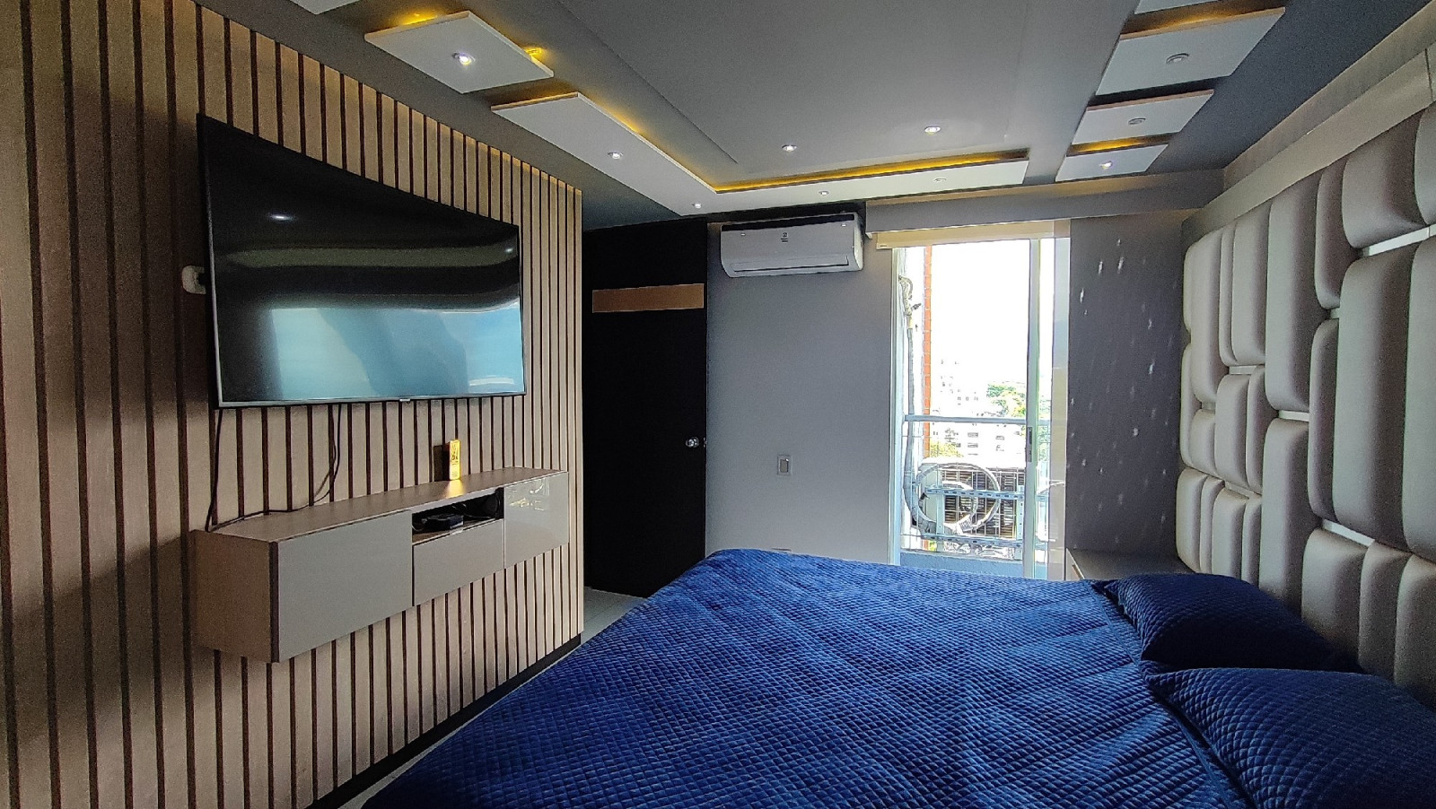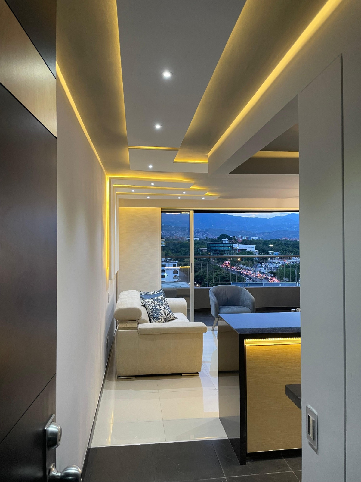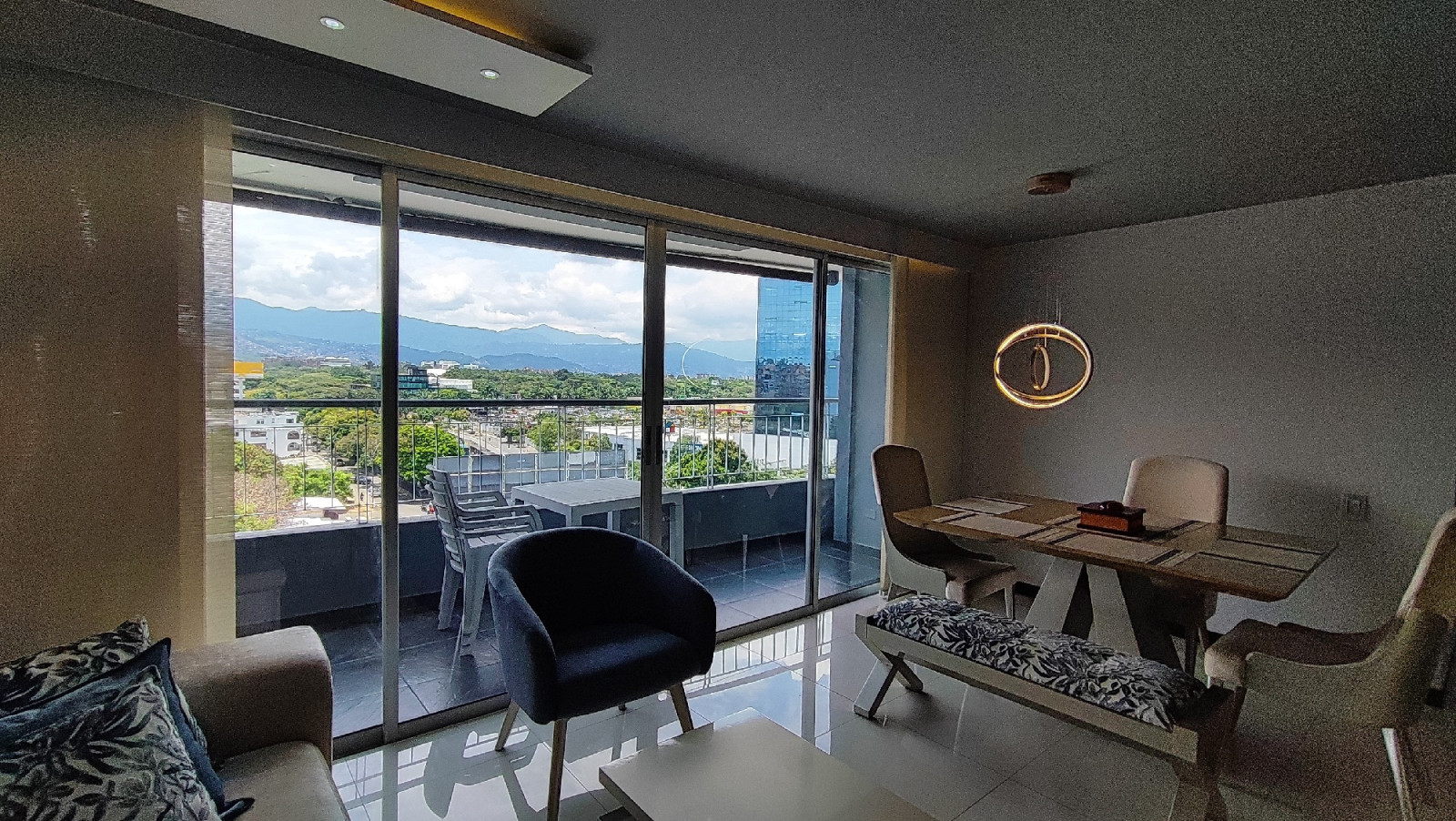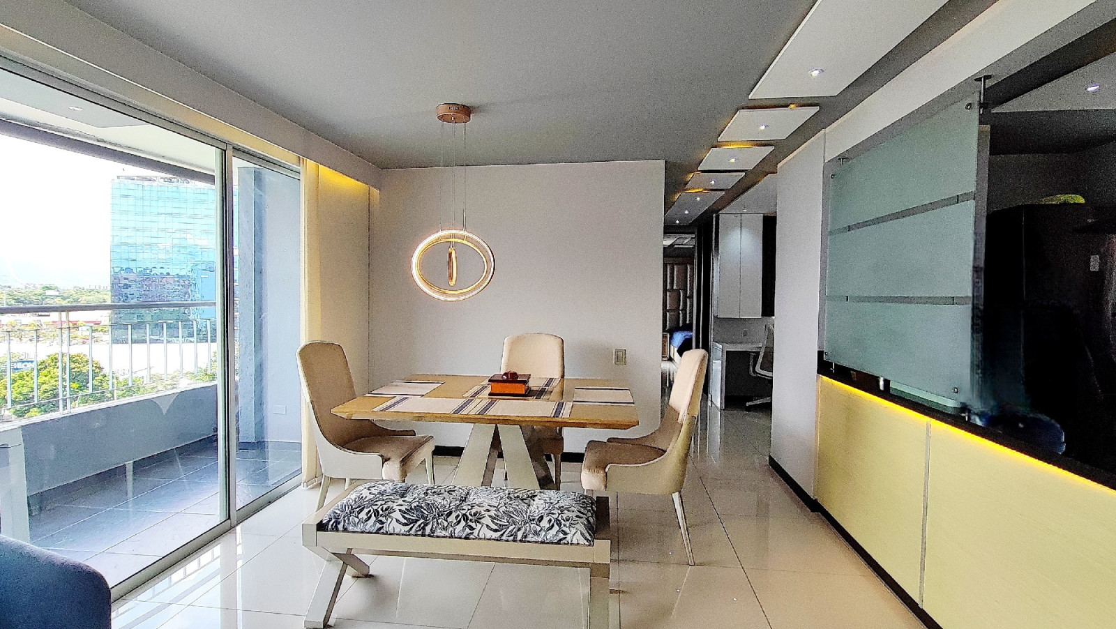 Se renta Apto Amoblado piso 11 con ascensor. ubicado en Mirador de Terrazas en Ciudad Jardín. Consta de 3 alcobas con closet, principal con vestier, baño, aire acondicionado y balcón, una de las auxiliares cuenta también con aire acondicionado; estudio, baño de alcobas, sala comedor con balcón amplio; cocina integra equipada, tipo americana; baño social; zona de oficio y parqueadero para 1 vehículo en sótano. El apto tiene vista externa a jardín plaza, se renta completamente amoblado, camas, televisores, horno microondas, nevera, sala, comedor y demás. El apto cuenta con excelentes acabados, pisos en porcelanato, baños con divisiones en vidrio templado; puertas, marcos, closet, vestier, muebles de cocinas y baños en madera; lámparas en sala comedor. blackout en alcobas y panel japonés en sala, etc. La ubicación es increíble, cerca de todo, centros comerciales, bancos, colegios, universidades, clínicas, restaurantes, etc. Precio no incluye servicios públicos, incluye administración.