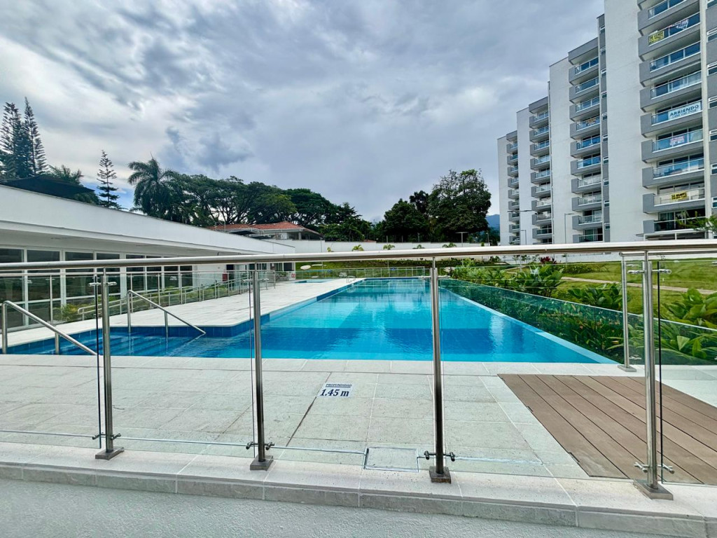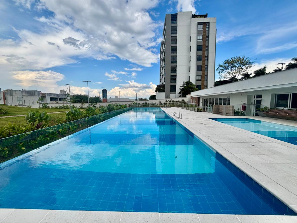 Excelente apartamento tercer piso Acabados de lujo , para estrenar ,consta de Sala, comedor, cocina abierta , zona de oficios, baño social, habitación principal con vestier , baño y balcón ,Segunda y tercera habitación con clóset y baño, sala de televisión, o estudio ,Todas las habitaciones con aire acondicionador, 2 parqueaderos en línea , Deposito, Zonas verdes , piscina , salón social, gimnasio, zona de juegos, zona verde.