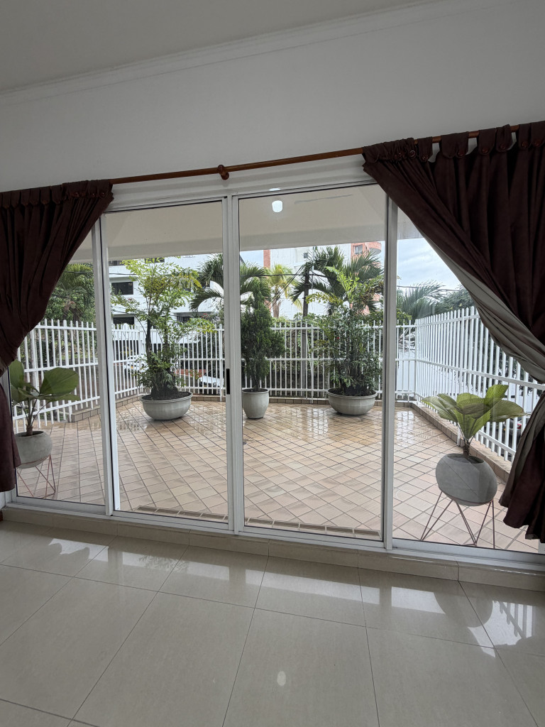 Se alquila apartamento al Norte de la ciudad de Cali, barrio Santa Mónica Residencial primer piso 90m2, 1 habitación, 2 baños, sala comedor amplia con 2 ventanales, cocina y zona de oficios, una terraza bastante grande y parqueadero propio. Conjunto con excelente ubicación, piscina para adultos y niños y vigilancia 24 horas. Valor alquiler $1.850.000 administración incluida