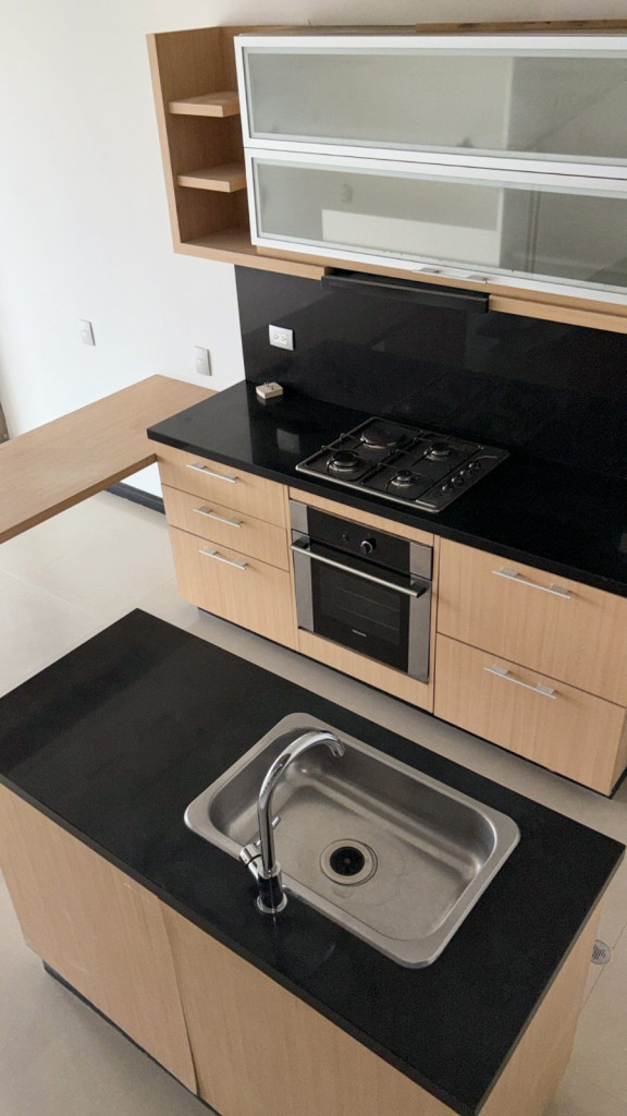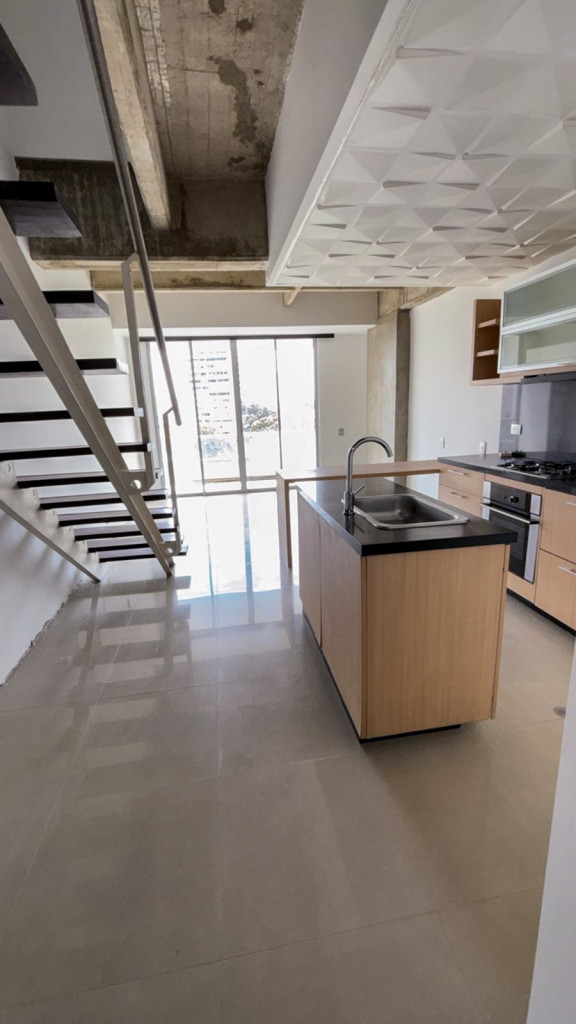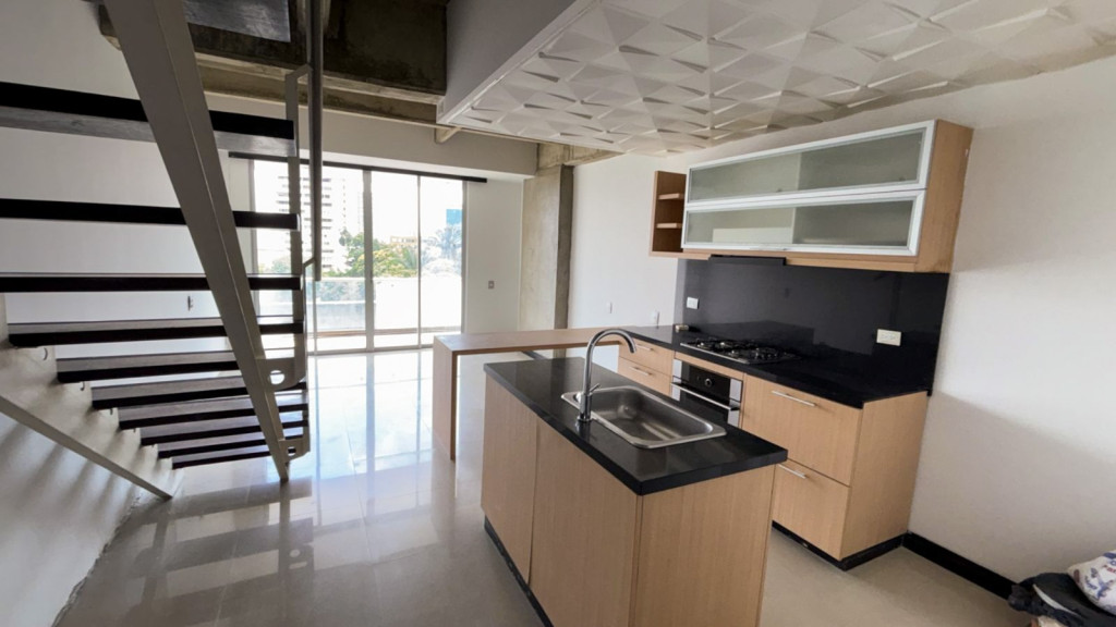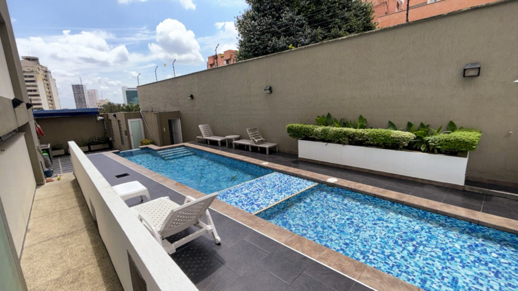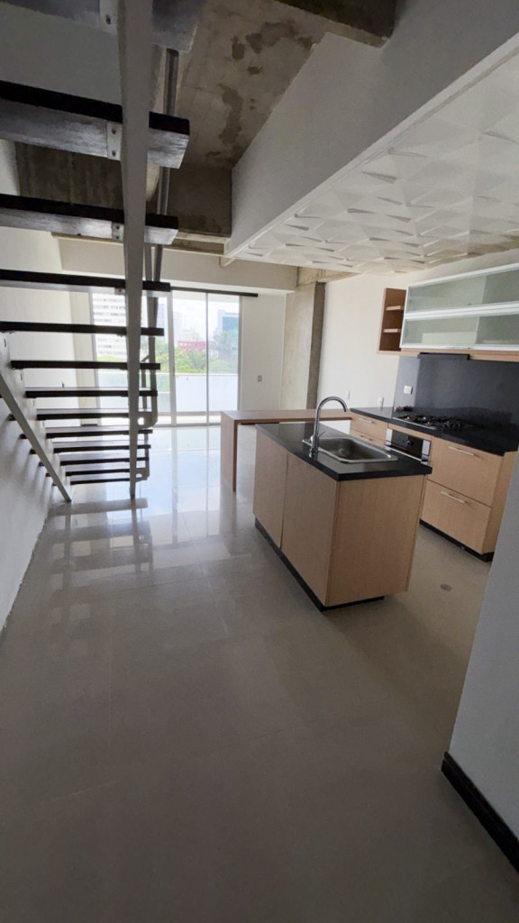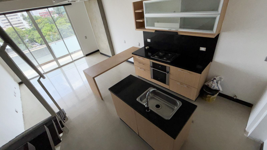 Apartamento dúplex con acabados modernos, hermosa vista a la ciudad, 80 mts, doble parqueadero en sótano, el apto cuenta con 2 habitaciones la principal con vestier, baño y balcón con vista a la ciudad, habitación auxiliar con vista interna, sala comedor, baño social, cocina abierta tipo americano y zona de oficios. El condominio cuenta con vigilancia privada 24/7, piscina, zona bbq, cerca a la zona gastronómica del barrio granada, restaurantes, bares, hoteles.