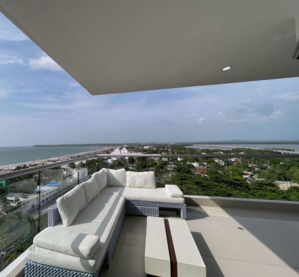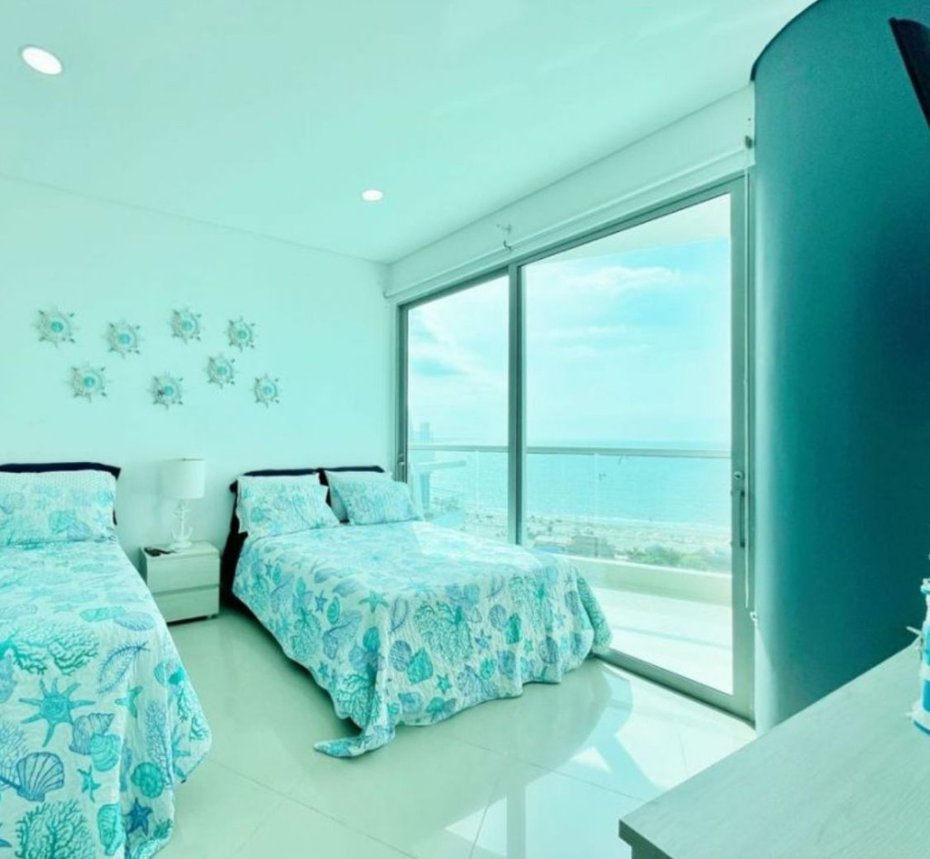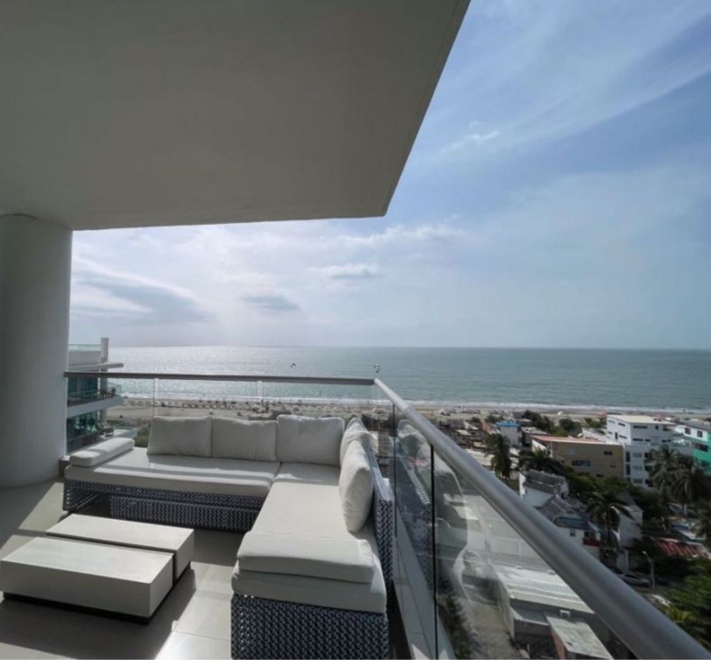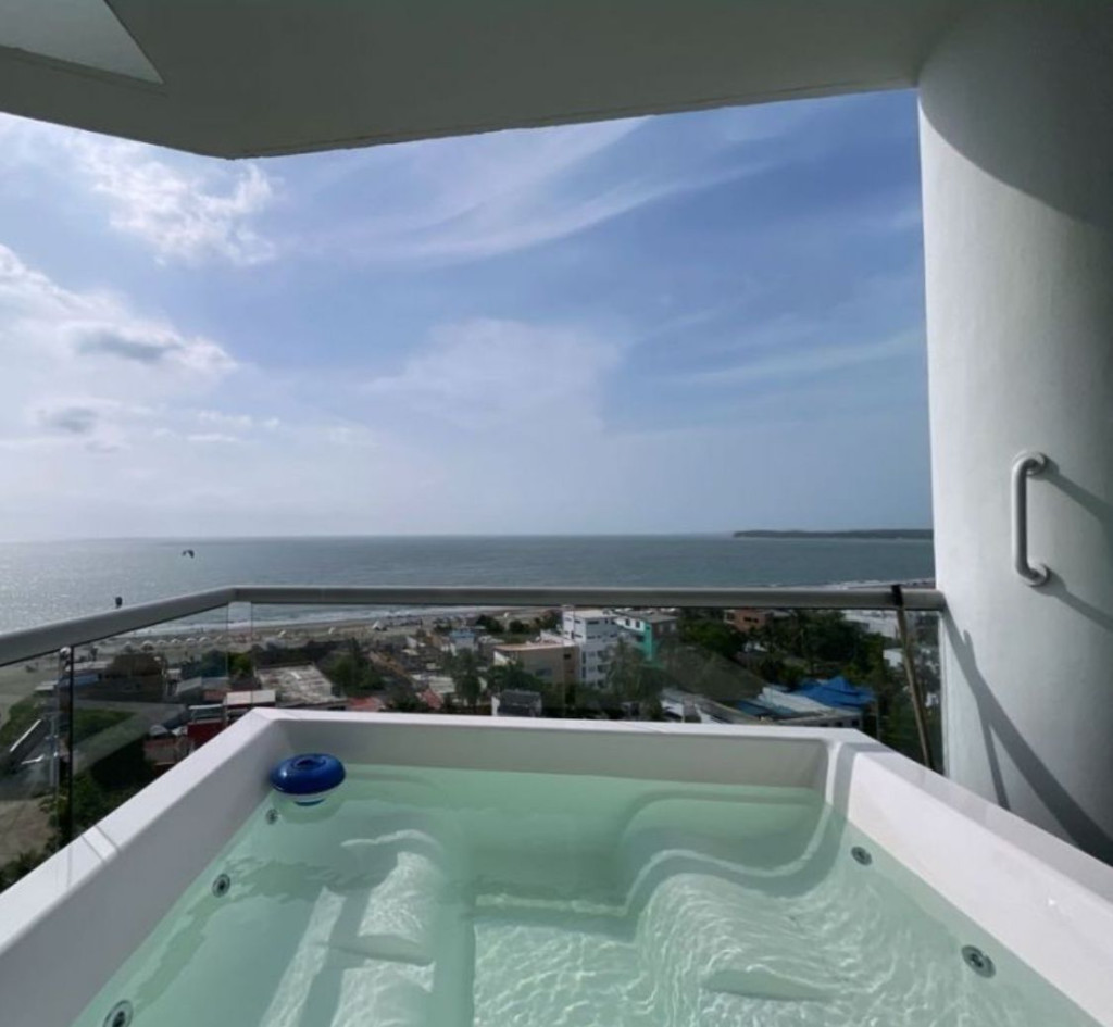 Se Vende Apartamento de Lujo con vista directa al Mar en el Sector de los Morros La Boquilla. El apartamento cuenta con un Jacuzzi en el balcón con vista panorámica, Consta de 3 Habitaciones la Principal con baño privado y Balcon, vista hacia al Mar, cuenta con un Balcon Amplio, Cocina Integral Equipada, Sala-Comedor, baño social, Zona de Oficios, Un Condominio Luxury Tipo Hotel con salida directa a la playa, tiene Amenidades como: dos salones sociales, zona BBQ, piscinas para niño y adulto, jacuzzi, Bar, Restaurante, gimnasio turco, Cancha de Tenis, lobby tipo hotel. con Acabados Increíbles.