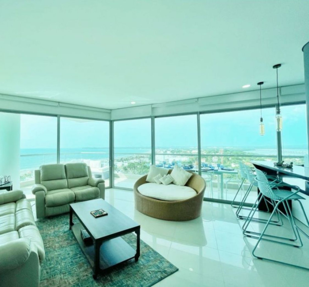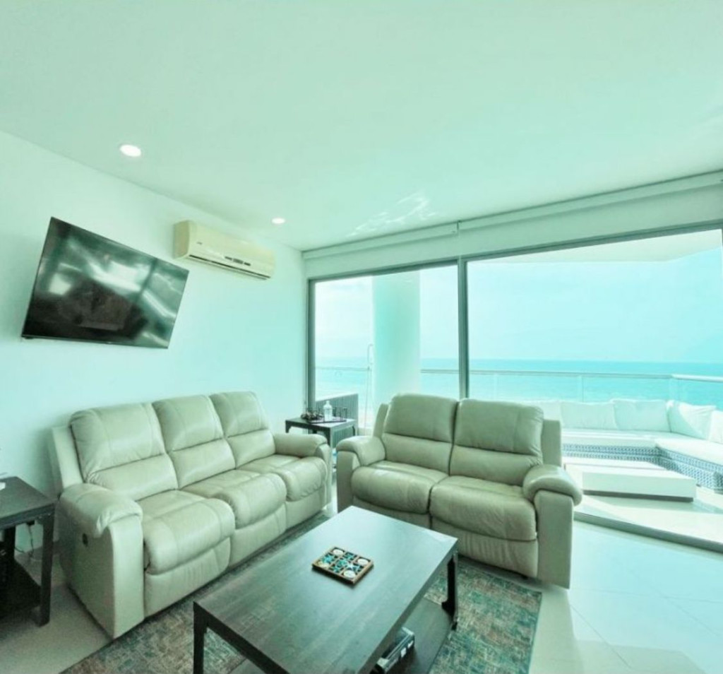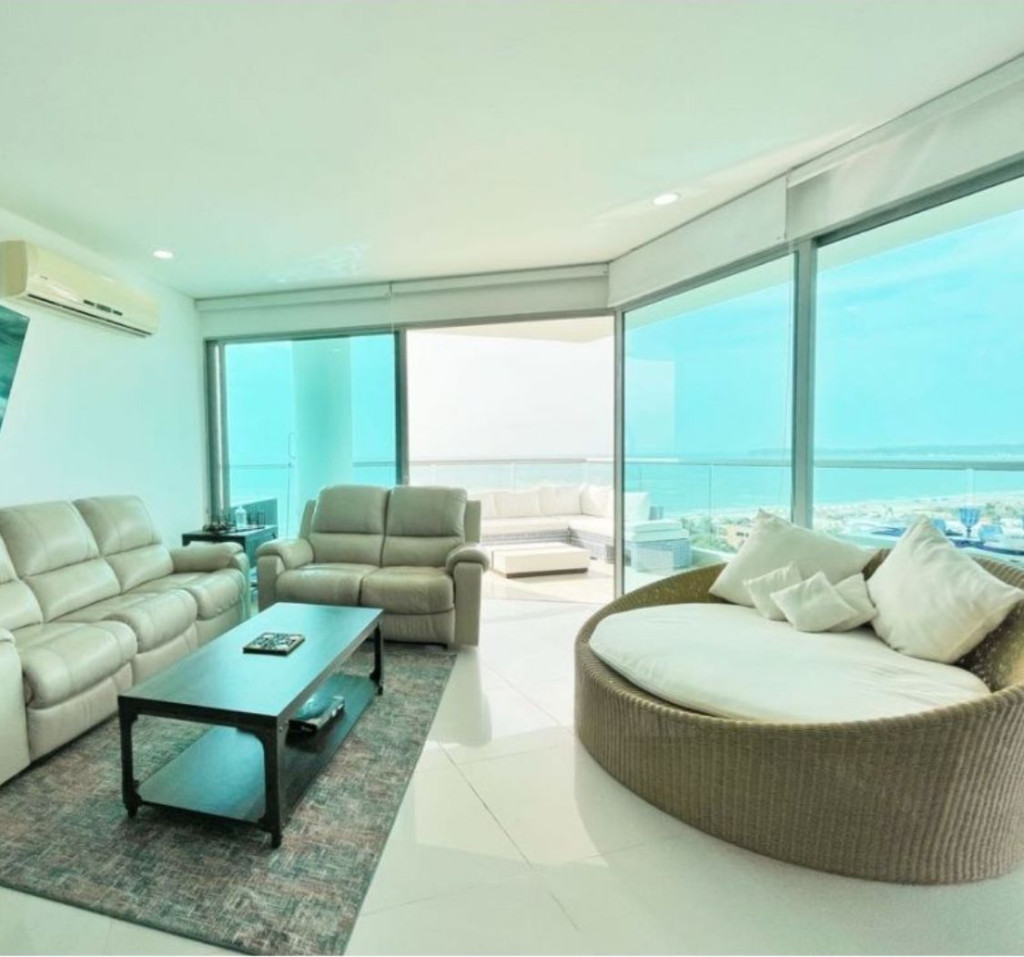 Se Vende Apartamento de Lujo con vista directa al Mar en el Sector de los Morros La Boquilla. El apartamento cuenta con un Jacuzzi en el balcón con vista panorámica, Consta de 3 Habitaciones la Principal con baño privado y Balcon, vista hacia al Mar, cuenta con un Balcon Amplio, Cocina Integral Equipada, Sala-Comedor, baño social, Zona de Oficios, Un Condominio Luxury Tipo Hotel con salida directa a la playa, tiene Amenidades como: dos salones sociales, zona BBQ, piscinas para niño y adulto, jacuzzi, Bar, Restaurante, gimnasio turco, Cancha de Tenis, lobby tipo hotel. con Acabados Increíbles.