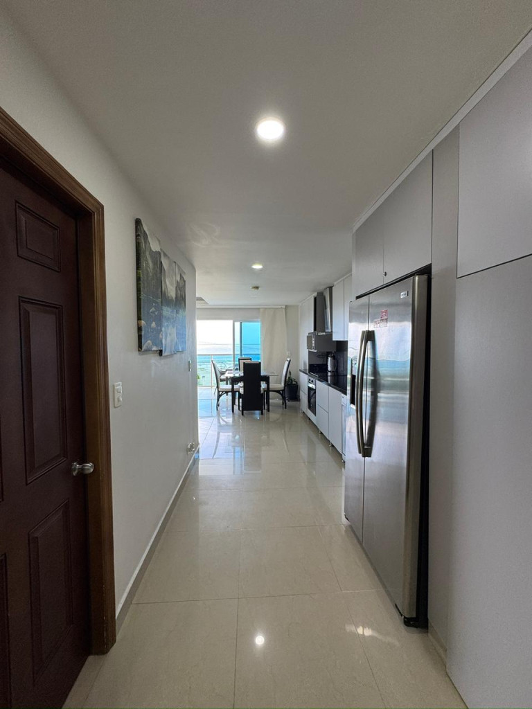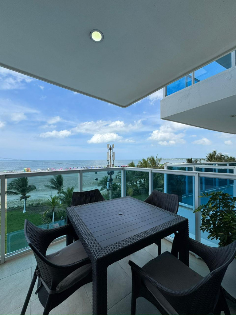 SE VENDE exclusivo y moderno Apto en Cartagena, sector los Morros, la Boquilla, piso 3ro con vista al mar, Remodelado, excelente ubicación, ingreso a la playa desde el edificio, 88 m2, uso mixto, el apto consta de: sala y comedor, cocina integral abierta, zona de oficios, baño social, 2 habitaciones con closet, la principal con baño, amplio balcón con vista a la playa, un parqueadero en sótano, pisos en porcelanato, Finos acabados en madera, vidrio templado en baños, luces led, cuánta con piscina con vista infinita, jacuzzi, sauna y turco, salón social, salón de juegos, vigilancia 24/7, amplias vías de acceso, cercano al sector turístico.