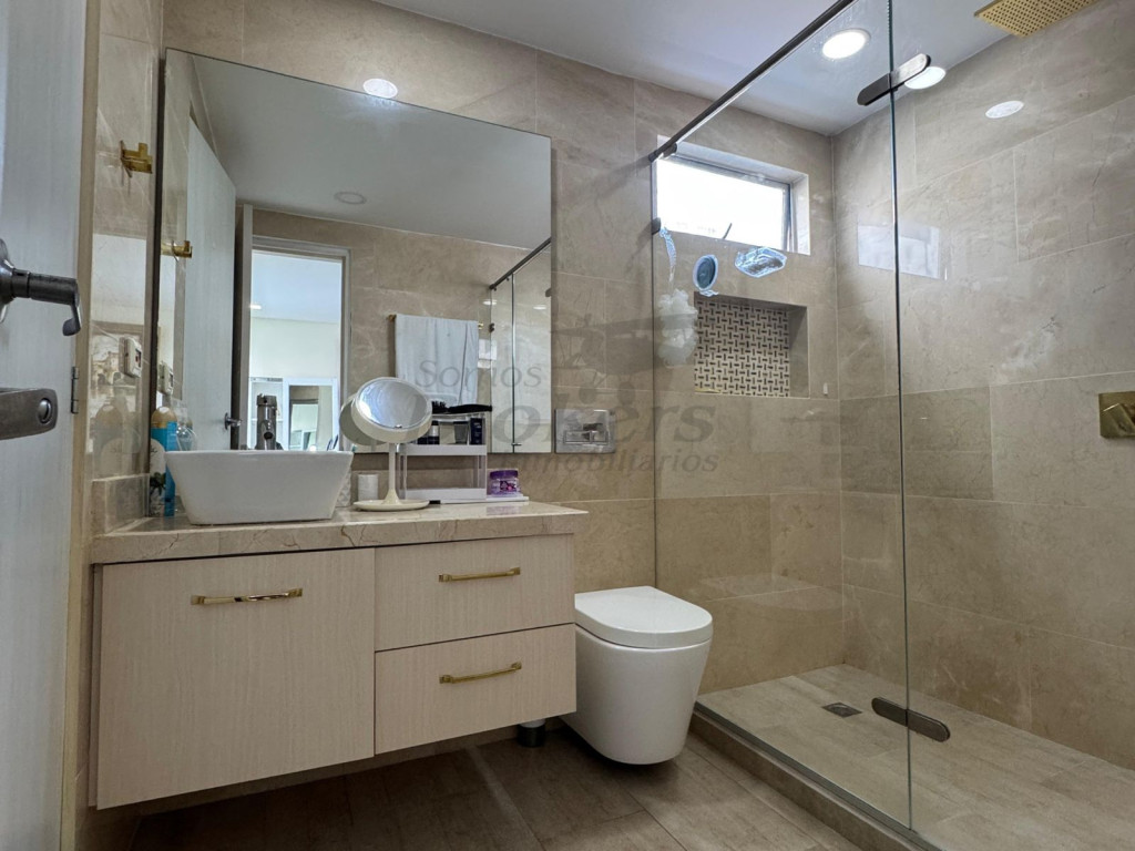 En venta apartamento en Manga, Cuenta con 3 habitaciones, cada una con excelente iluminación natural, 3 baños, habitación del servicio con baño, y una funcional zona de ropas independiente. El balcón ofrece una encantadora vista lateral a la bahía de Manga, ideal para disfrutar de atardeceres. El edificio cuenta con amenidades como piscina, gimnasio y zona Bbq.