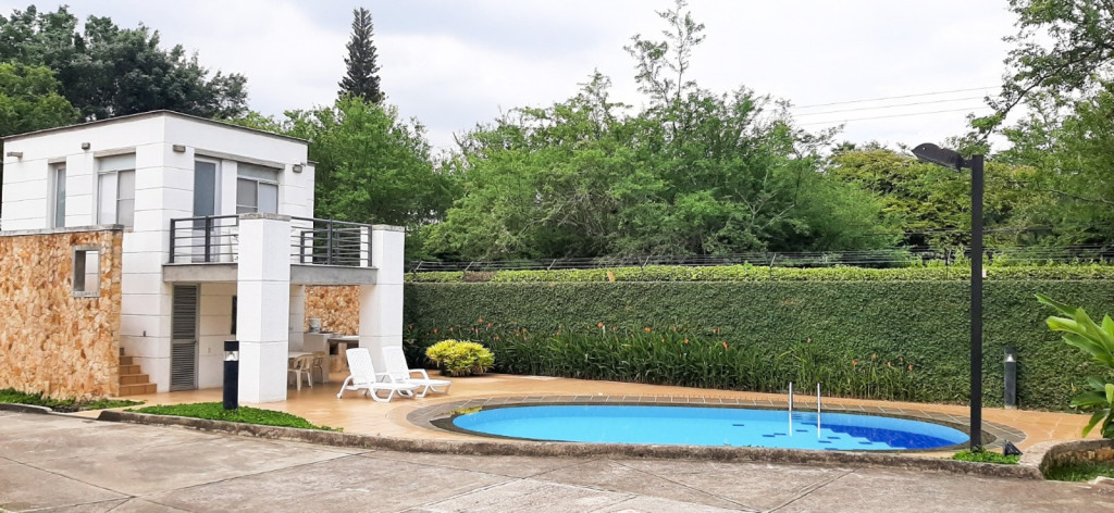 Hermosa casa en condominio privado de 3 casas, ubicado en el sector de Pance cerca a las principales universidades y colegios de la ciudad, lote 515 mts y construidos 355 mts, 3 habitaciones todas con closet, la principal con amplio vestier y baño privado, baño de habitaciones, sala, comedor, estar de tv, espacio para oficina, cocina completa con mesón en mármol y generoso espacio de almacenamiento, cuarto del servicio con baño, zona de oficios, estadero con zona verde y jacuzzi, parqueadero cubierto para 2 carros y 2 carros en parqueadero descubierto, deposito, el condominio cuenta con vigilancia, salón social, piscina para adultos y niños, zona BBQ. Consta de apartaestudio en la parte de atrás de la propiedad, baño, cocineta, aire acondicionado y balcón.