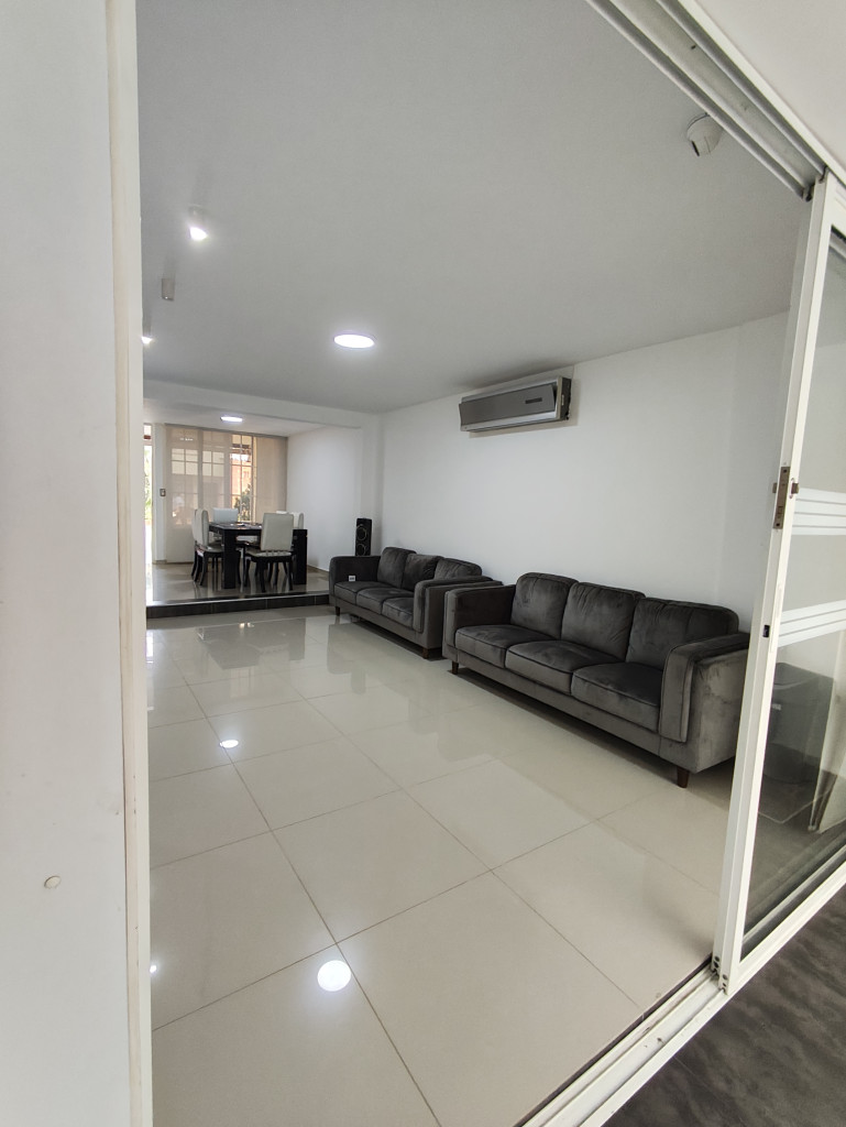 e renta hermosa casa remodelada total y ampliada moderna, iluminada, fresca, rodeada de mucha arborización, en el 1er piso encontramos sala, comedor, cocina integral, sala de televisión, habitación, baño, zona de ropas, patio, en el 2do Nivel encontramos 3 habitaciones con closet, la principal con baño y Vestier, estudio, parqueadero para dos vehículos en sótano. zona social con piscina adultos y niños, kiosko de reuniones, juegos infantiles, muchas zonas verdes.