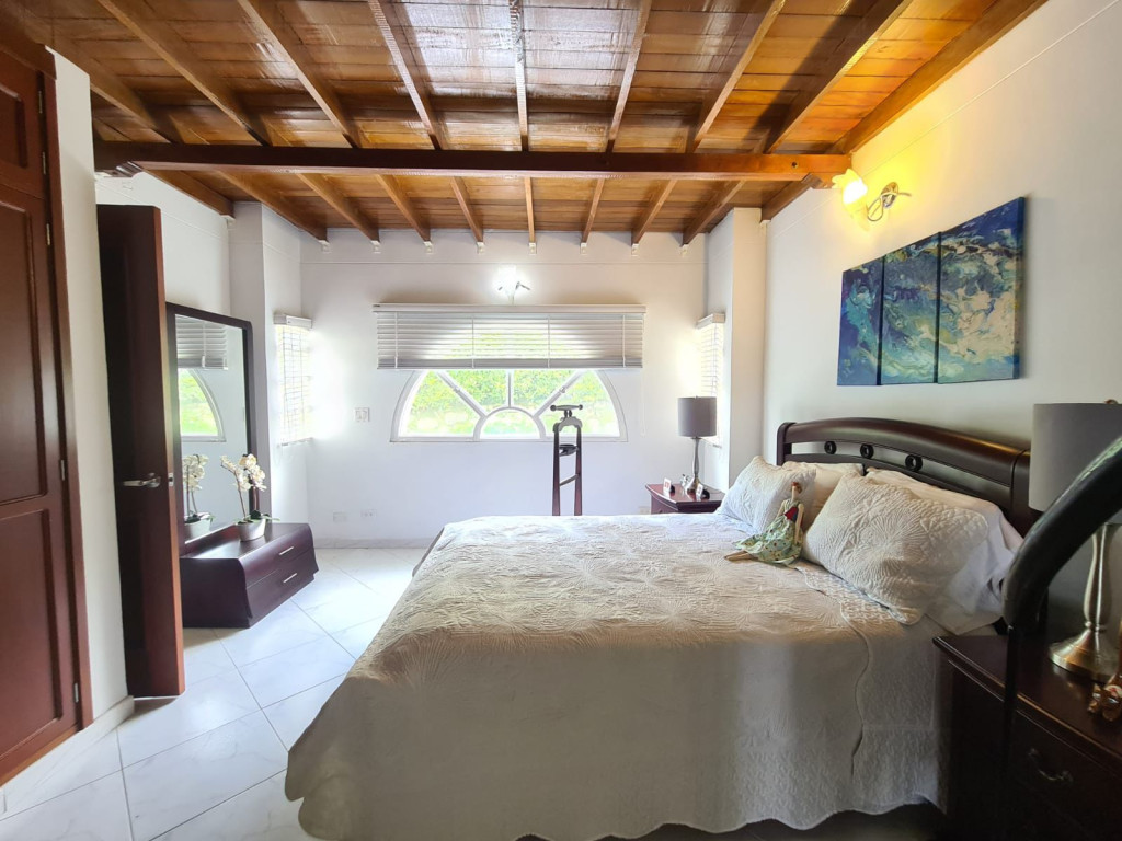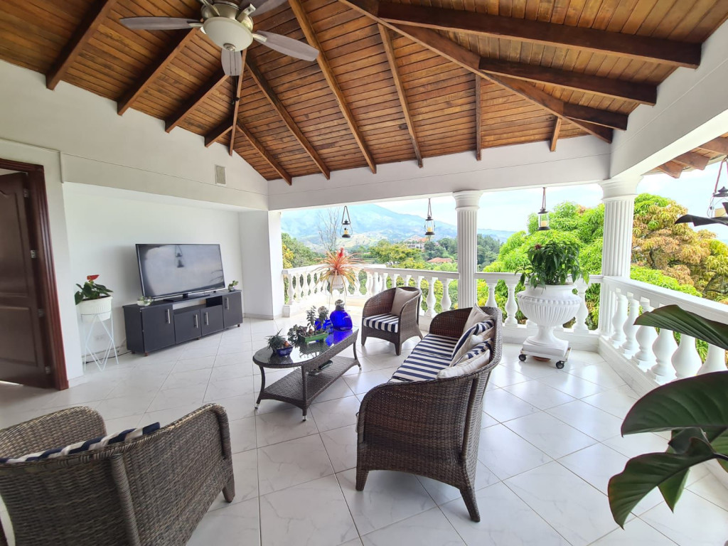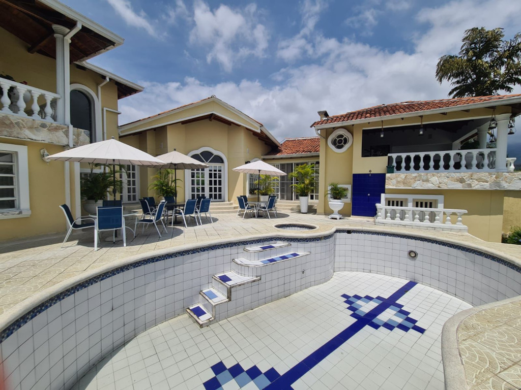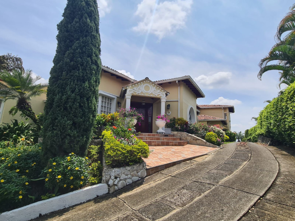 Espectacular casa campestre en venta de dos niveles con un lote de más de 6000 M2, rodeada de naturaleza y con una imponente vista panoramica de 360 grados hacia la montaña y hacia la ciudad, la propiedad se caracteriza por sus amplios corredores y balcones desde los cuales, se disfruta una vista abierta en todos los angulos creando una conxion con el entorno natural. Amplia, iluminada y con finos acabados. Consta de 7 habitaciones y 6 baños, sala principal, comedor principal, sala auxiliar y comedor auxiliar, cocina integral amplia, zona de oficios independiente, habitación del servicio con baño privado , terraza con piscina y jacuzzi, depósito o bodega, amplias zonas verdes y arboles frutales, jardines, parqueadero para unos 20 vehículos y cubierto para dos. Conjunto con vigilancia 24/7, disfruta de una propiedad única, rodeada de naturaleza y tranquilidad. Libre de todo gravamen. Precio negociable.