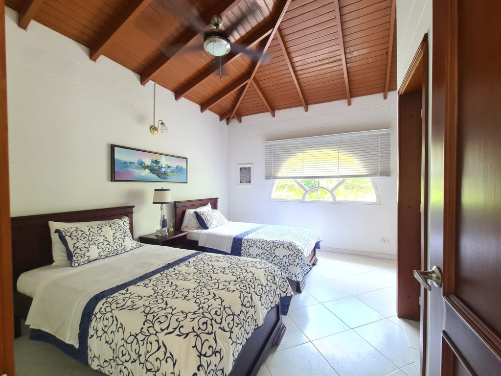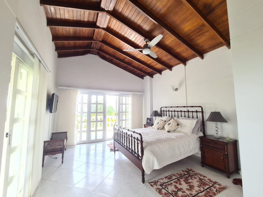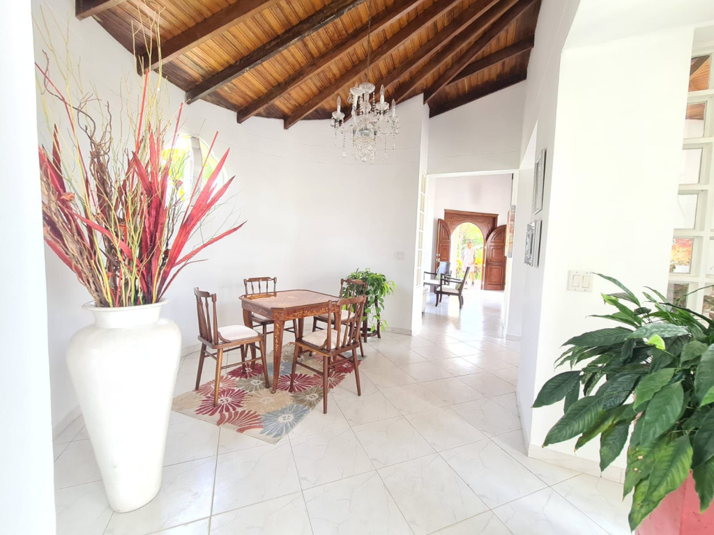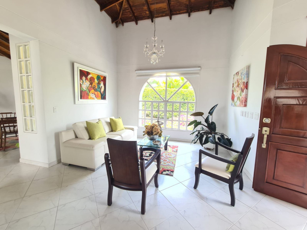 Espectacular casa campestre en venta de dos niveles con un lote de más de 6000 M2, rodeada de naturaleza y con una imponente vista panoramica de 360 grados hacia la montaña y hacia la ciudad, la propiedad se caracteriza por sus amplios corredores y balcones desde los cuales, se disfruta una vista abierta en todos los angulos creando una conxion con el entorno natural. Amplia, iluminada y con finos acabados. Consta de 7 habitaciones y 6 baños, sala principal, comedor principal, sala auxiliar y comedor auxiliar, cocina integral amplia, zona de oficios independiente, habitación del servicio con baño privado , terraza con piscina y jacuzzi, depósito o bodega, amplias zonas verdes y arboles frutales, jardines, parqueadero para unos 20 vehículos y cubierto para dos. Conjunto con vigilancia 24/7, disfruta de una propiedad única, rodeada de naturaleza y tranquilidad. Libre de todo gravamen. Precio negociable.